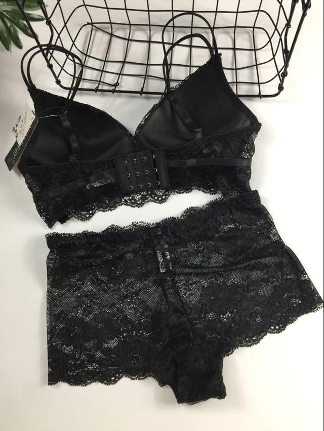 Комплект жіночої нижньої білизни чорний пушап трусики шортики мереживні