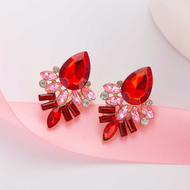Жіночі гарні сережки маленькі з камінчиками червоні з рожевим